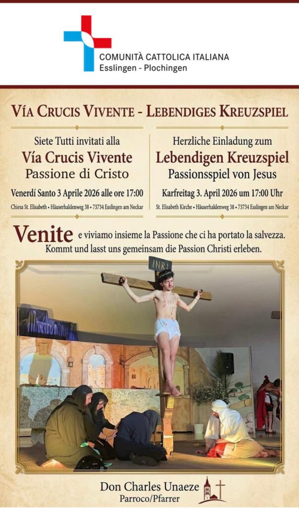 | Ven, 23 | 18.00 – | Via Crucis | St. Elisabeth Esslingen |